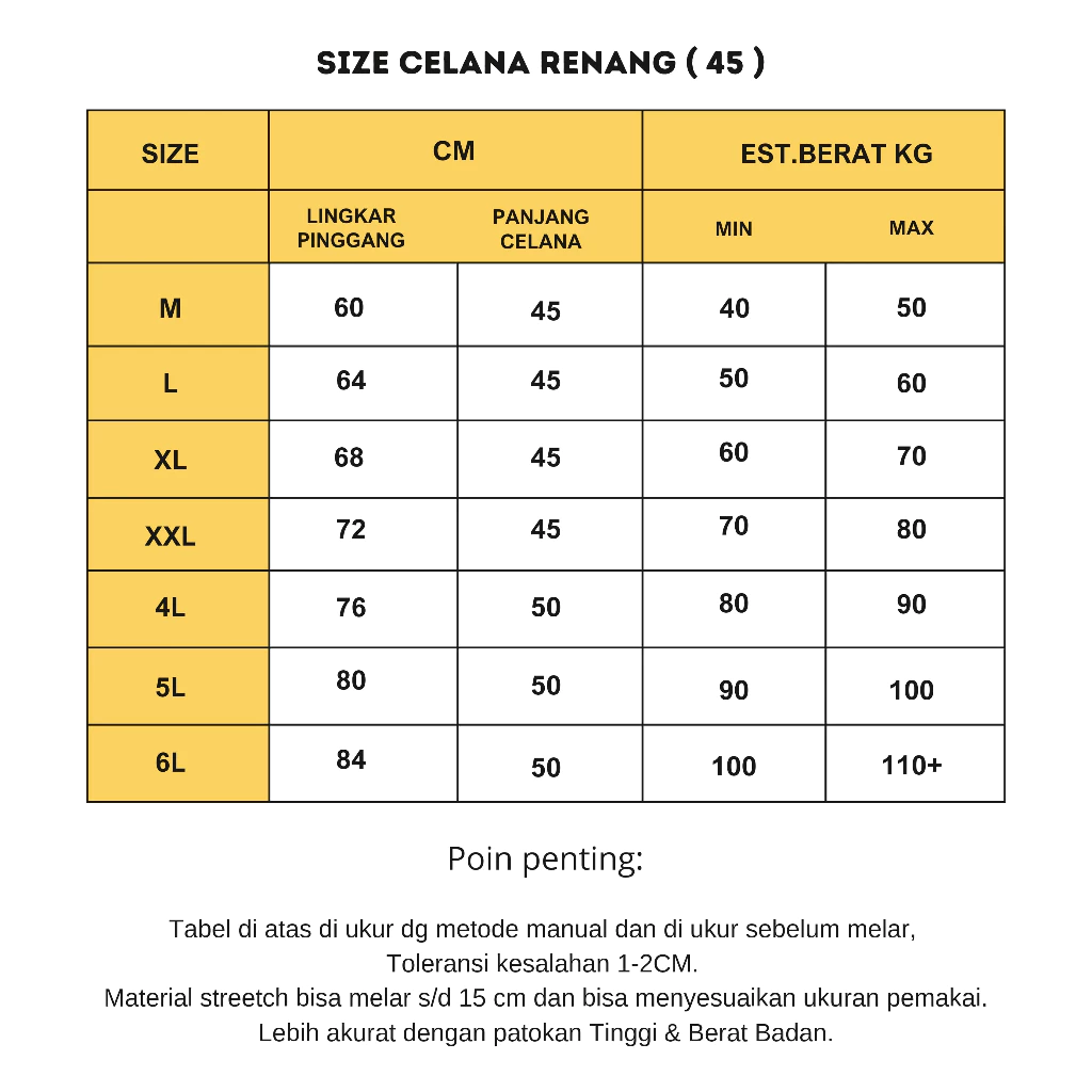 Size celana 38 – 42