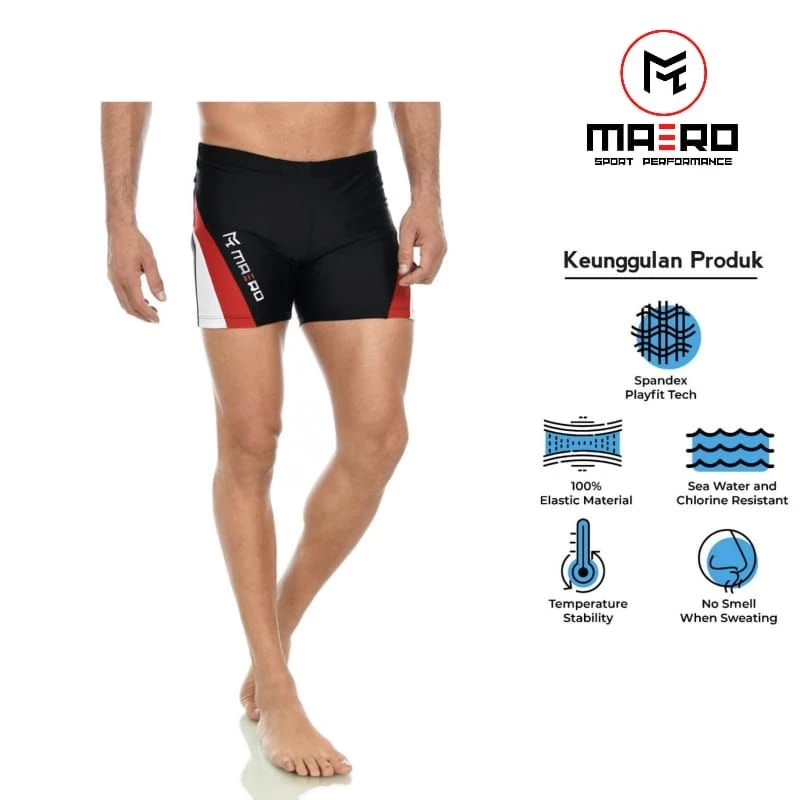 Celana renang pria panjang hitam elegan dengan kode Maero estimasi berat 40-110kg. Terbuat dari material spandex lycra yang lembut, sejuk, dan lentur.